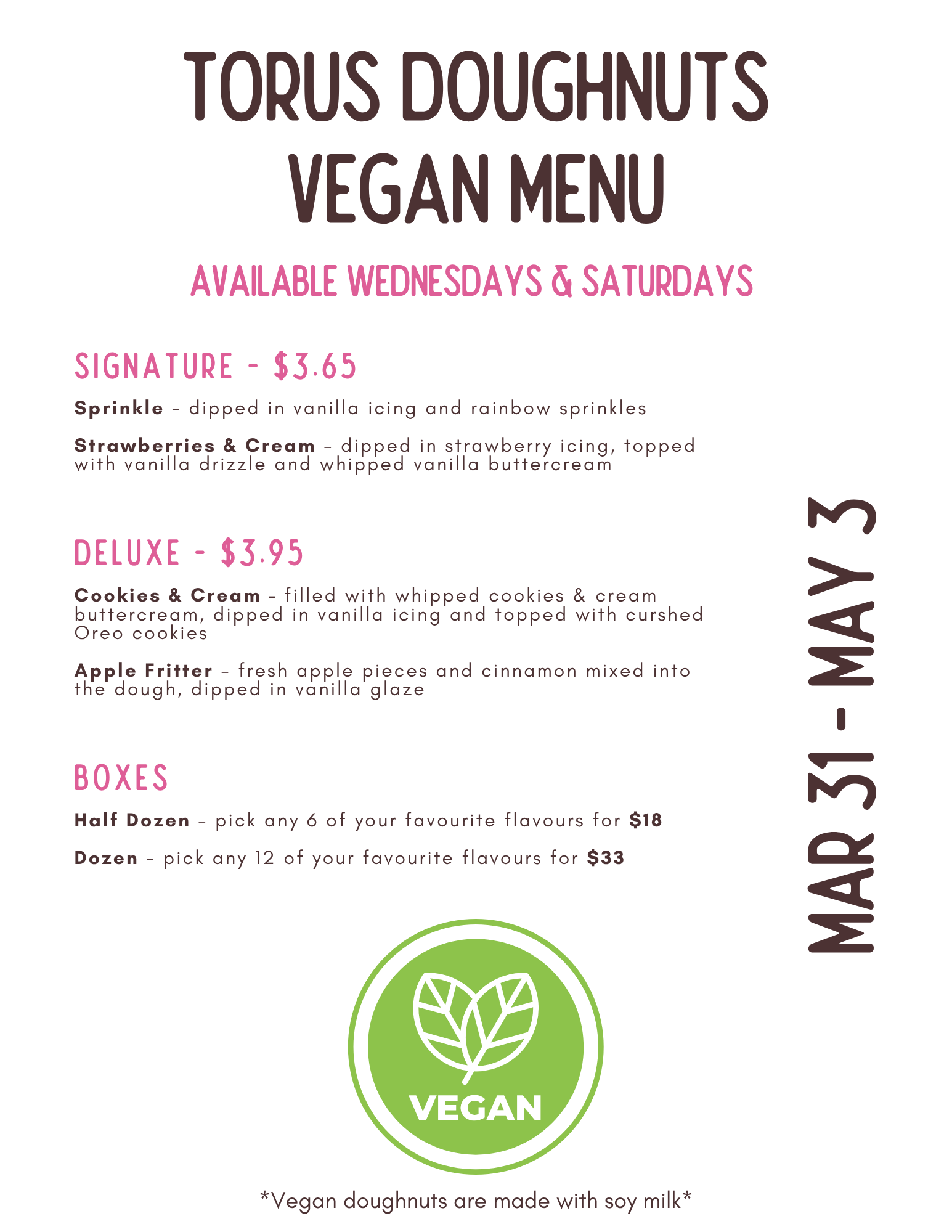 April Vegan DoughnutsAvailable on Wednesdays and Saturdays